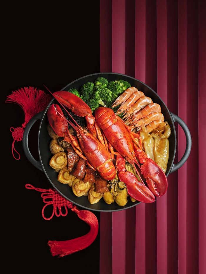 廚師團隊匠心炮製寓意祥瑞的傳統賀年美食,新春宴席收費由6位澳門幣3,688元*及12位澳門幣9,888元*起。富麗堂皇的節慶佳餚包括分別以富貴黑金剛鮑魚、挪威三文魚及波士頓龍蝦為主角的三款開運撈起,象徵賓客來年風生水起,財源滾滾。墨魚籽高湯焗蟹鉗由大廚巧手將墨魚滑釀入蟹鉗中焗製,再配上濃郁高湯,完美展現精湛廚藝。富貴黃金鳳尾蝦不但口感香脆,金黃色賣相更為宴席增添喜慶氣氛。